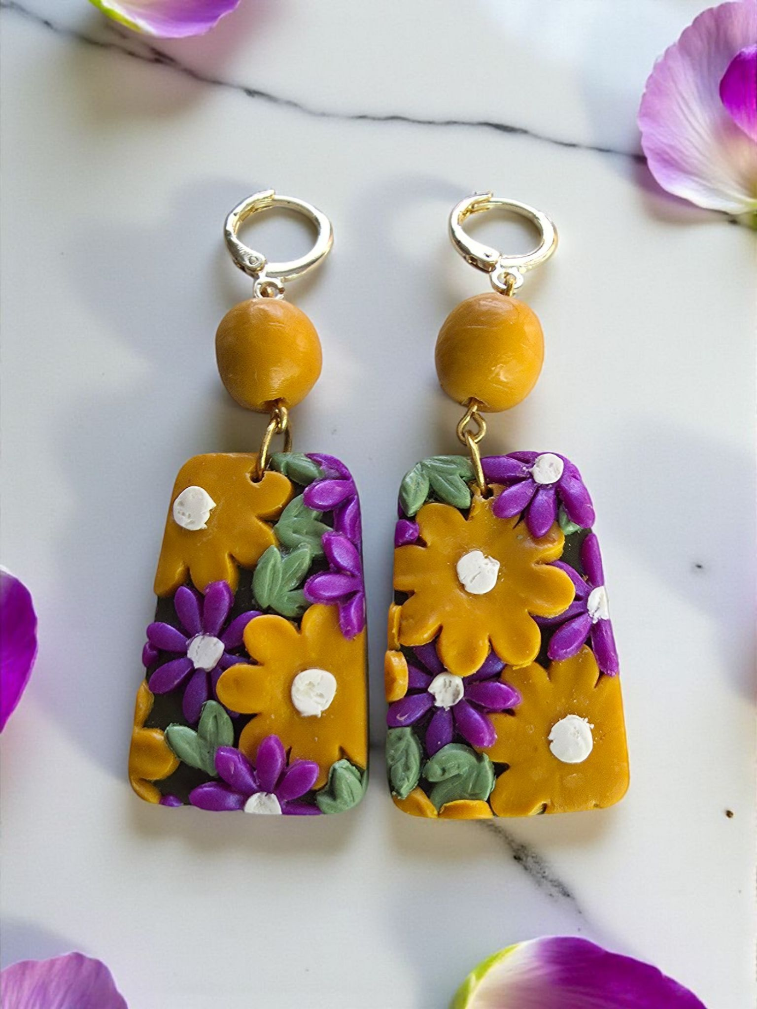 Elevate your look with Angela earrings, featuring a unique handmade design crafted from lightweight, hypoallergenic polymer clay. These elegant pieces blend comfort and style effortlessly.
