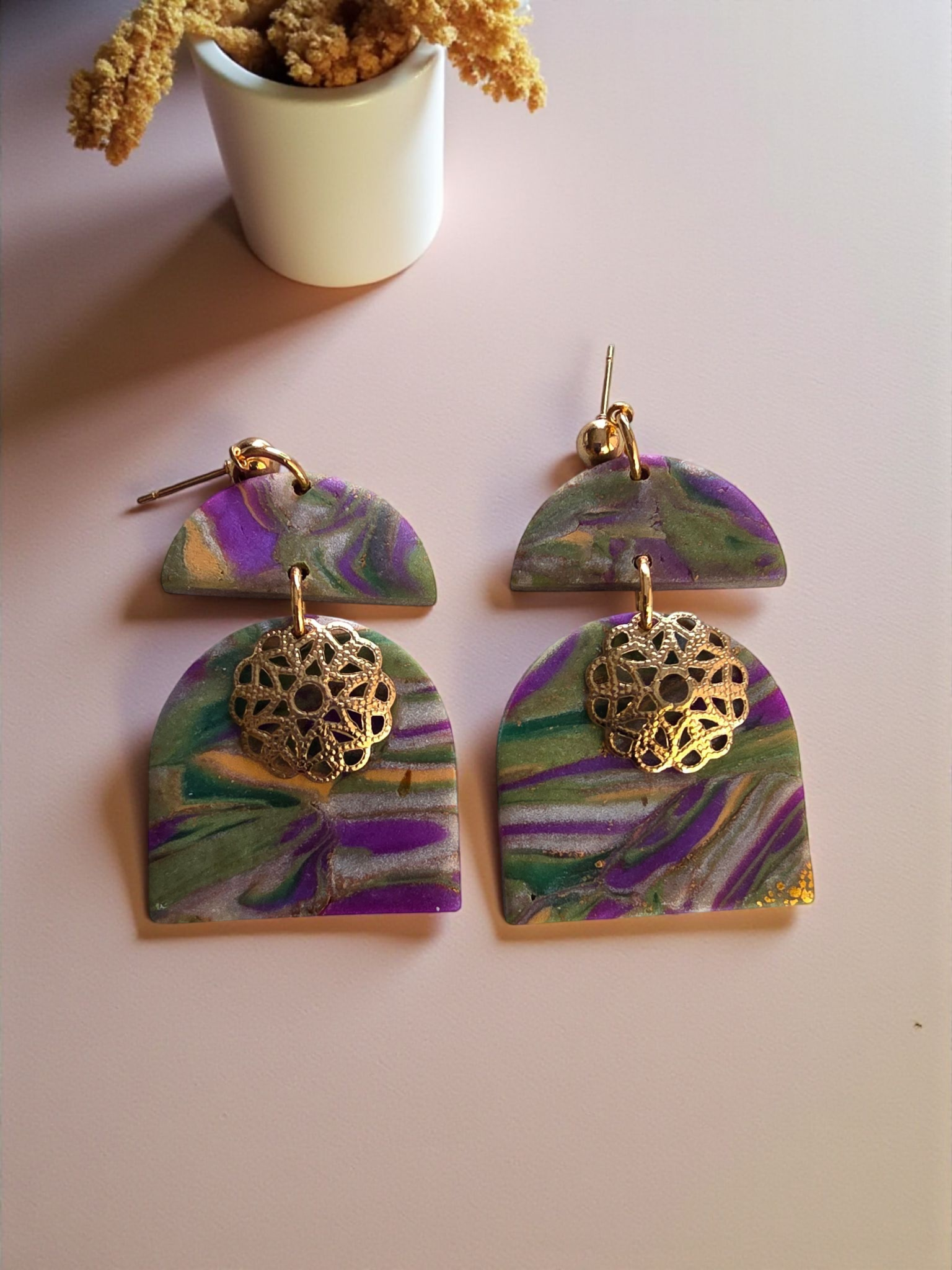 Add a splash of fun with Carmela earrings! Crafted from vibrant purple polymer clay and finished with a shiny golden accent, these playful earrings bring cheerful vibes to any outfit. Hypoallergenic and lightweight, they’re perfect for all-day comfort and style with a joyful twist.