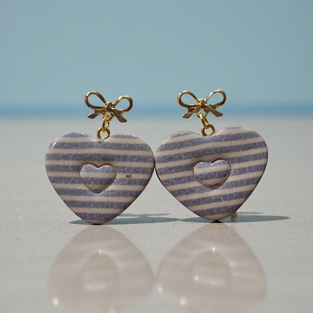 Handcrafted polymer clay earrings with a nostalgic retro flair. The inside heart design brings vintage charm to your everyday style. Hypoallergenic construction ensures comfort for all ear types