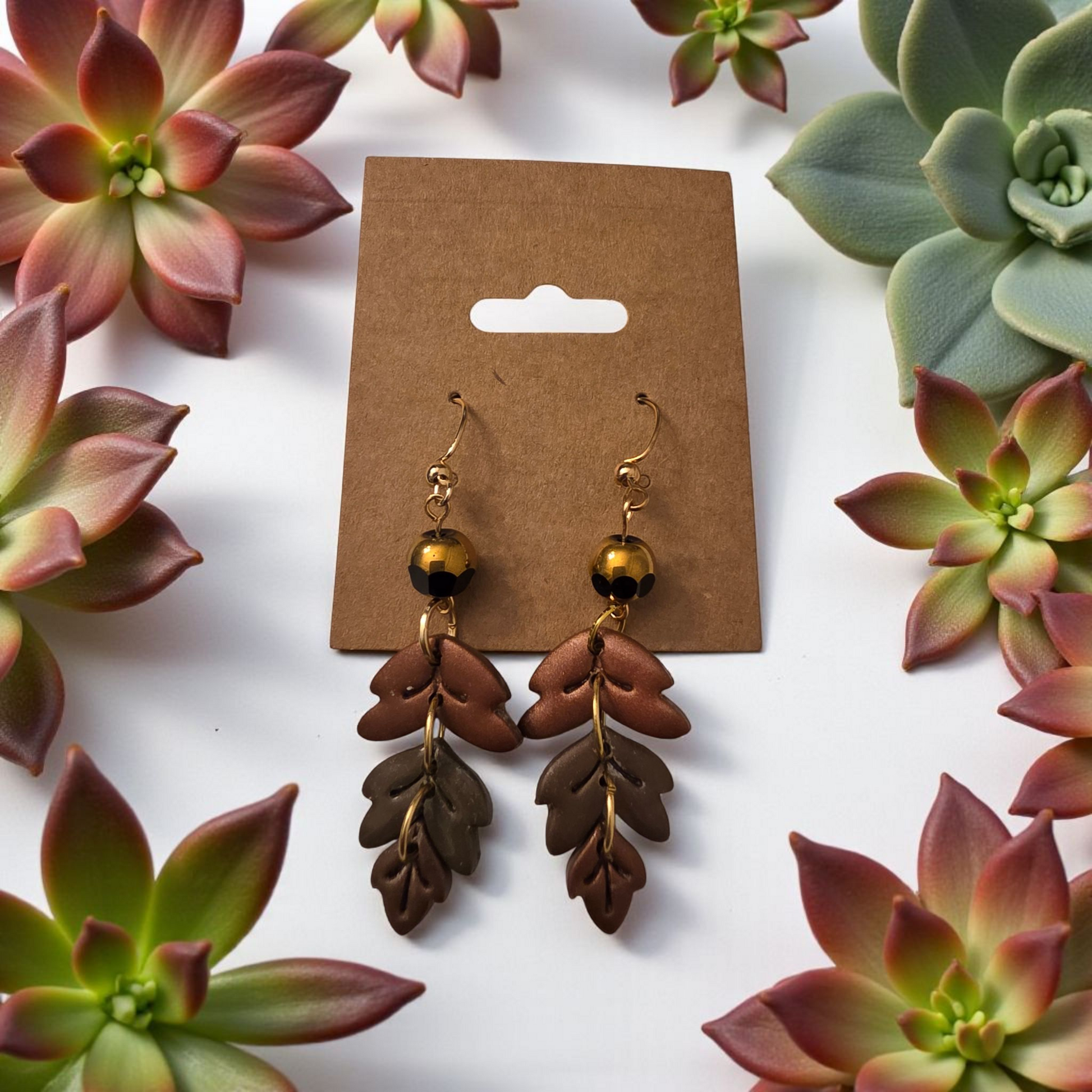 Mila earrings showcase handcrafted polymer clay in warm copper and green tones, inspired by the rich hues of fall. Lightweight and hypoallergenic, these elegant dangles combine handmade charm with everyday comfort.