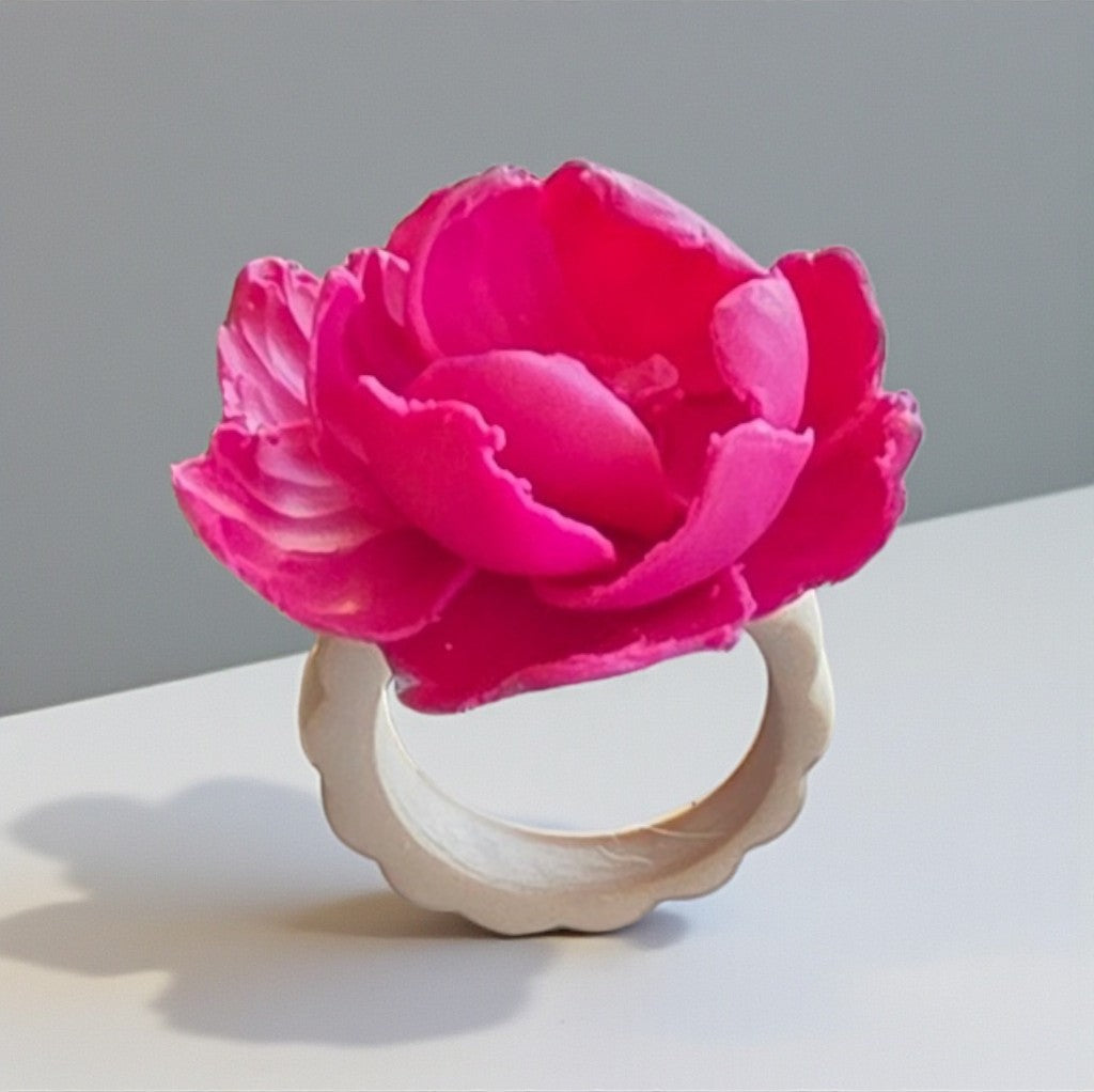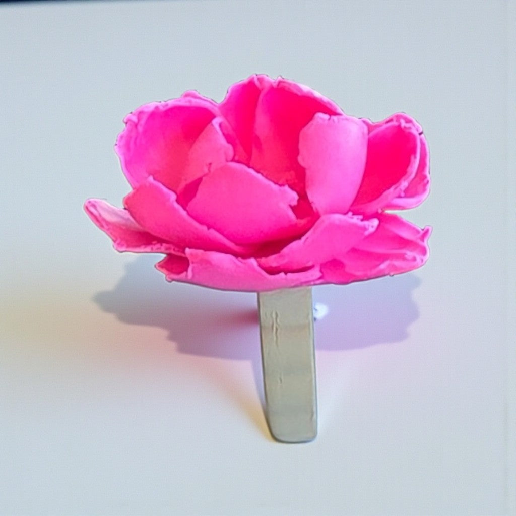 Handcrafted polymer clay ring in vibrant hot pink, designed for everyday elegance. Lightweight and comfortable for all-day wear. Perfect for adding a pop of personality to any look. Ring sizes made to order.